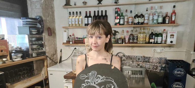 ¡Sí, aquí mismo fue donde nos recreamos en el polifacético perfil de Raquel (La Chiado)! Su hogar es un espacio con apariencia de taberna, pero que esconde un universo de creatividad, propuestas culturales diferentes, muchísima ilusión… y allí uno se siente como en el salón de su casa. Y así ocurrió con nuestro café: risas, complicidad, improvisación y ritmo frenético.